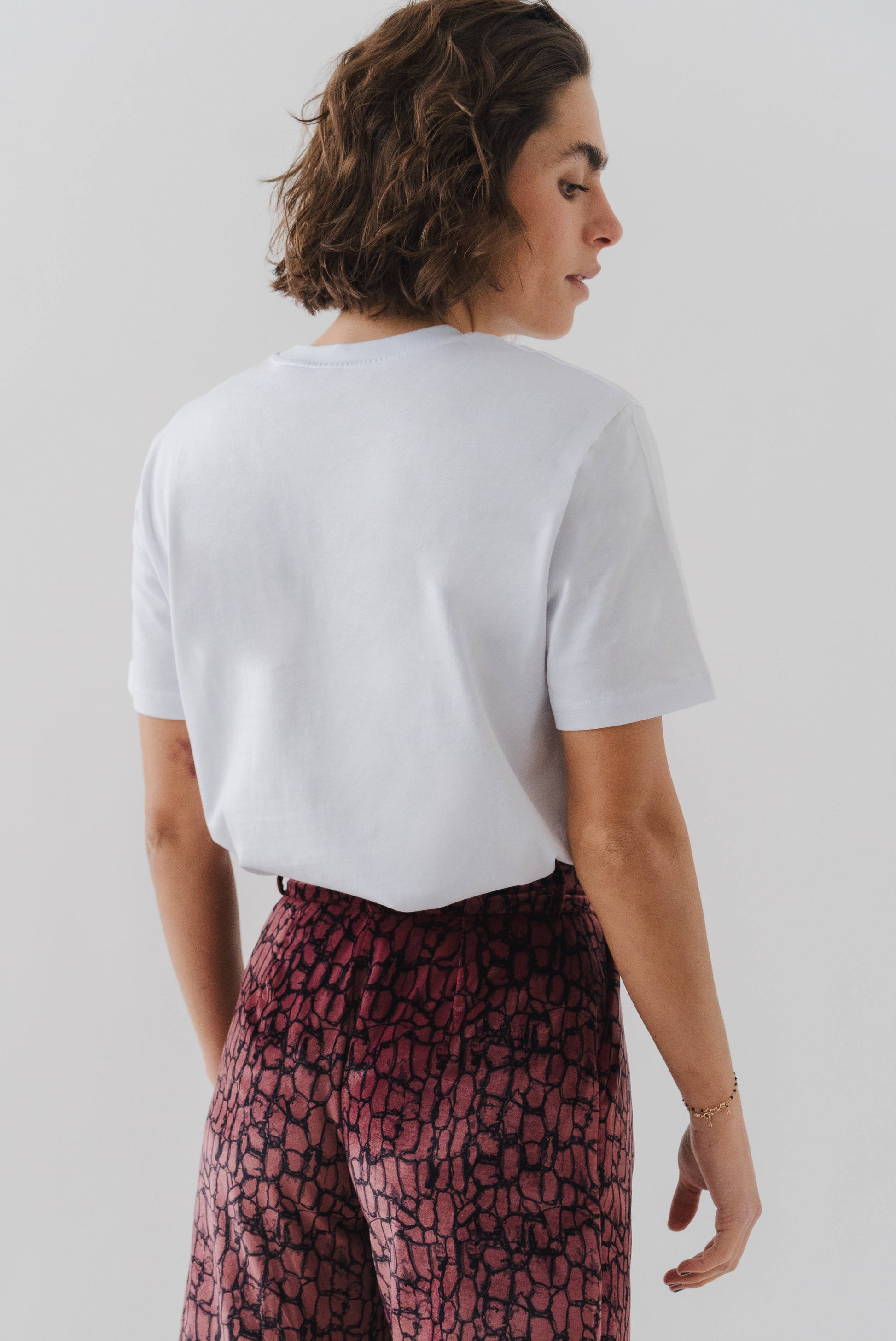 And there you have it, the classic and essential t-shirt. It may look simple, but everything's been thought of: a perfectly round collar (neither too open nor too closed), a very slightly oversized volume and perfect thickness, just what's needed to make it quali. It's knitted in our STELLA® 100% organic cotton jersey.